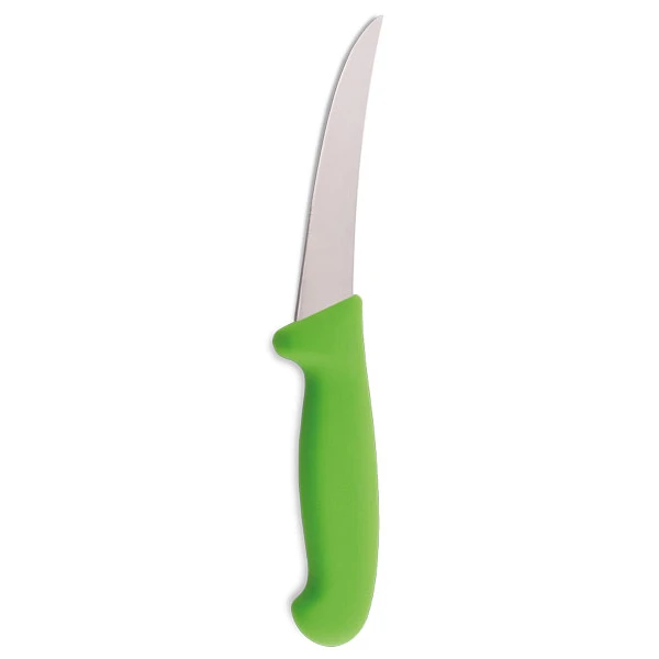 Super handlicher Ausbeiner in leicht flexibler Ausführung für ein perfektes Auslösen am Knochen. Klingenlänge 13 cm. Dank Signalfarbe überall leicht zu finden.