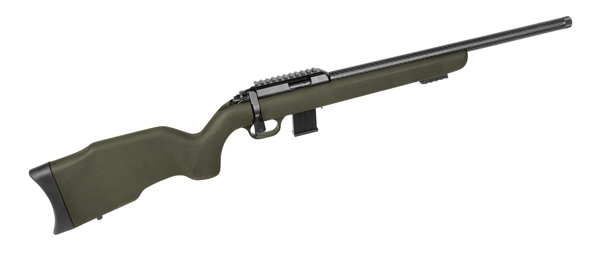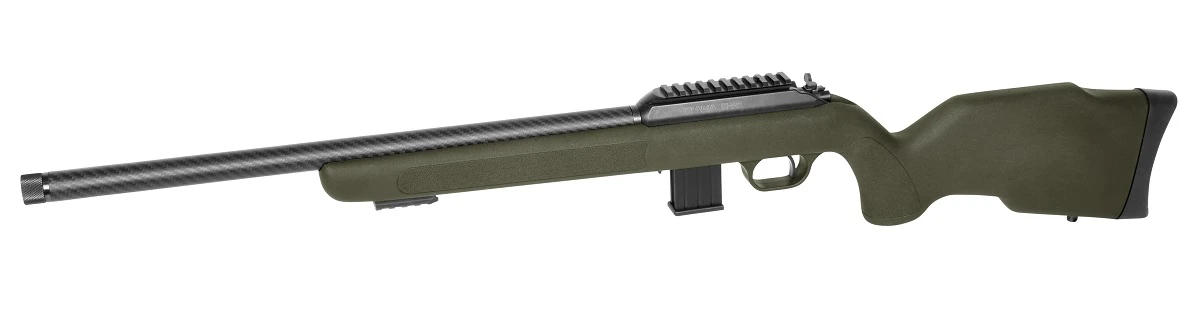 Die DIANA R-22 verfügt über einen ergonomischen Allwetter-Polymer-Schaft in ‘hunting-green’, der für Rechts- und Linksschützen geeignet ist. Der gehämmerte Präzisionslauf kommt mit einem 1/2” – 20 UNF Mündungsgewinde mit gesenkter Mündung, so dass optional ein Schalldämpfer angebracht werden kann. Der trocken stehende Direktabzug bietet ein einstellbares Abzugsgewicht von ca. 0.9 kg bis 1.3 kg. Durch die zwei Picatinny-Schienen können sowohl Zielhilfen als auch ein Zweibein angebracht werden. Ebenso besteht die Möglichkeit zur Anbringung eines Tragegurts (Trageriemenösen sind nicht im Lieferumfang enthalten). Der griffgünstige Kammerstengel und die schwingungsdämpfenden Materialien runden das Gesamtbild ab.
