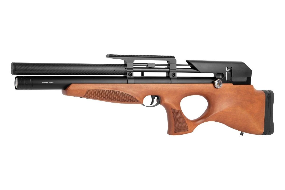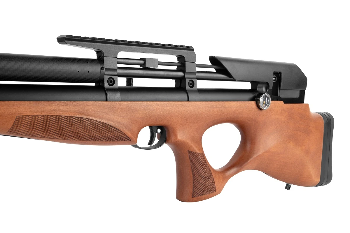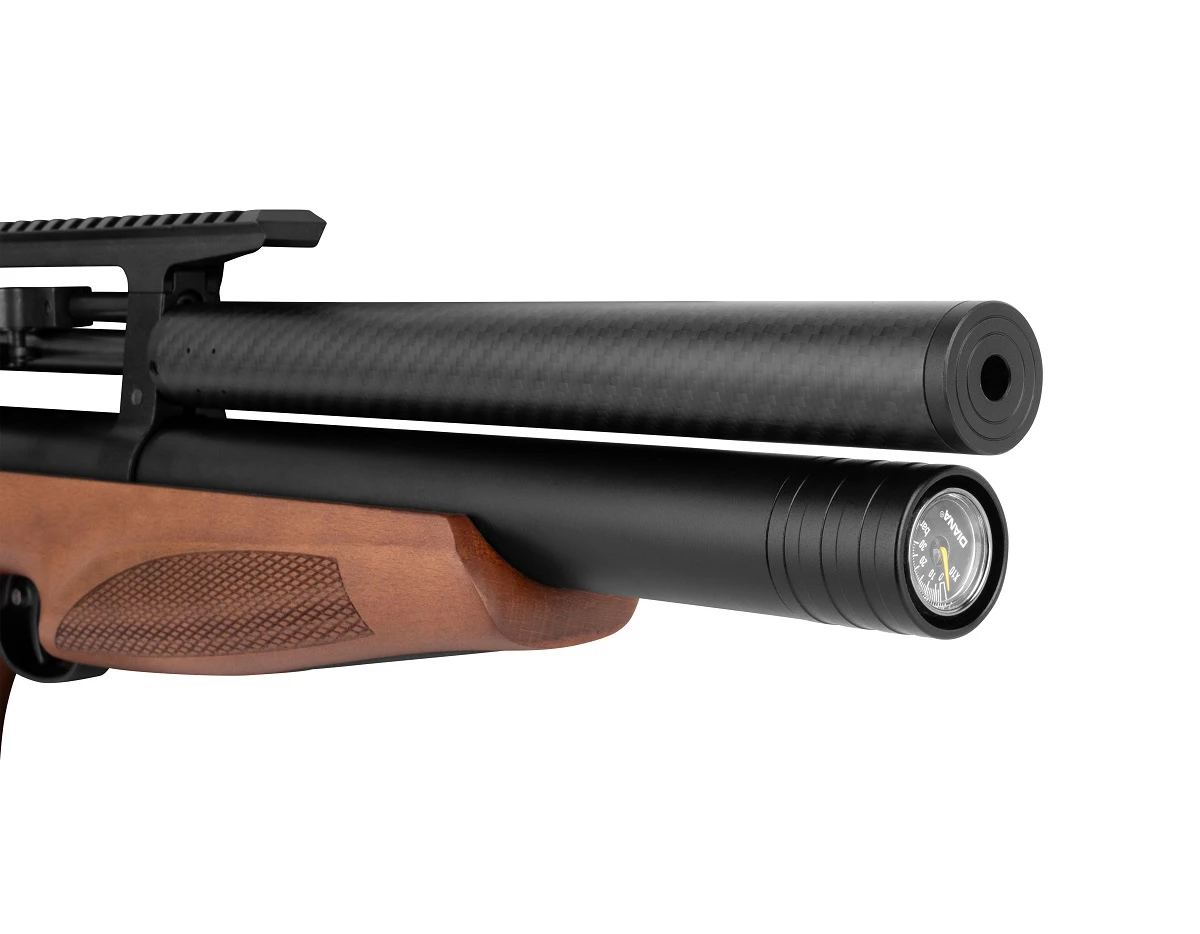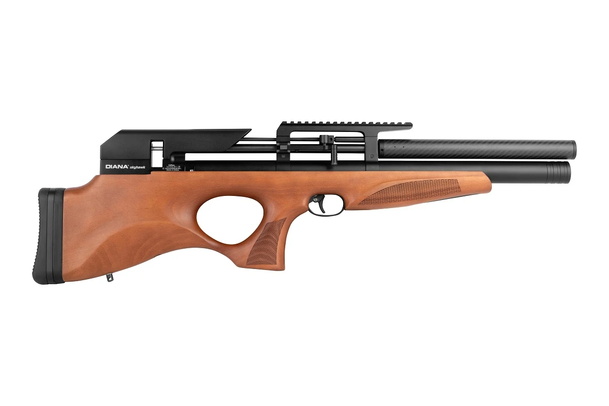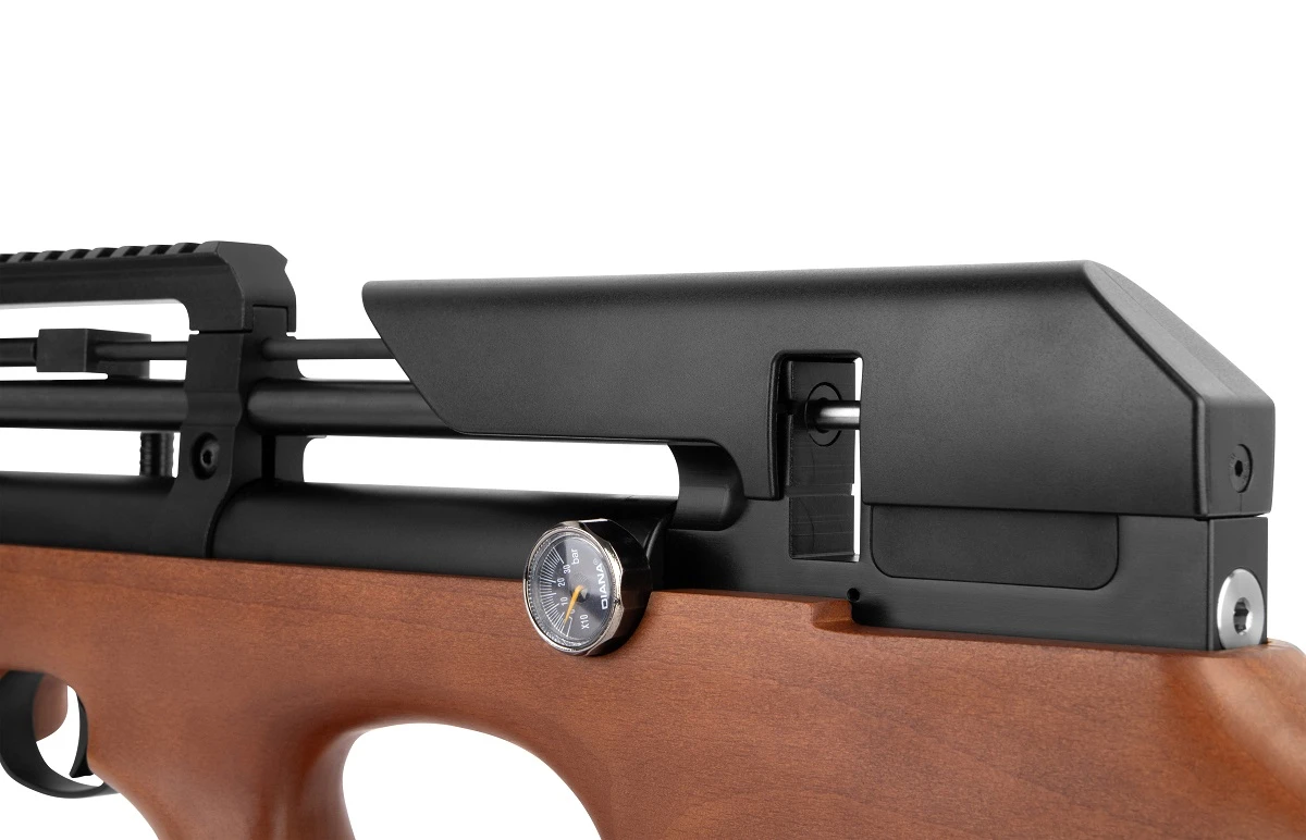 Das DIANA skyhawk ist ein Bullpup Pressluftgewehr. Der Antrieb des DIANA skyhawk erfolgt über ein zuverlässiges Pressluftsystem. Mit Hilfe eines Pressluftkompressors, einer Pressluftflasche oder einer Handpumpe kann der Presslufttank des Druckluftgewehrs einfach gefüllt werden, was für den Benutzer Flexibilität und Komfort bedeutet. Die Befüllung des PCP-Tanks erfolgt mit maximal 250 BAR und über einen Foster-Anschluss. Zwei integrierte Manometer am PCP Luftgewehr ermöglichen es, den Druck in der Waffe stets im Blick zu behalten.