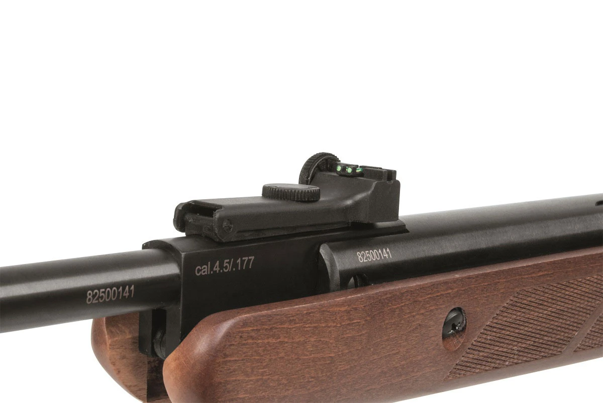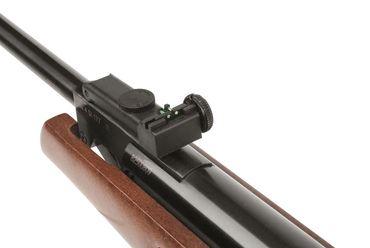Das Diana two-fifty Luftgewehr im Kaliber 4.5 oder 5.5 mm Diabolo kann durch den einstellbaren Abzug ideal den Bedürfnissen des jeweiligen Schützen angepasst werden. Das Luftgewehr besitzt einen ergonomischen Lochschaft im modernen Design. Die einstellbare Fiber-Optik-Visierung sorgt für die nötige Präzision auch bei widrigen Witterungsverhältnissen, gummierte Schaftkappen und eine 11mm Prismenschiene auf der kinderleicht ein Zielfernrohr befestigt werden kann. Außerdem sorgt die Fiberoptik-Visierung bei diesem Luftgewehr für leichtes und genaues Schiessen auch bei schlechtem Wetter.