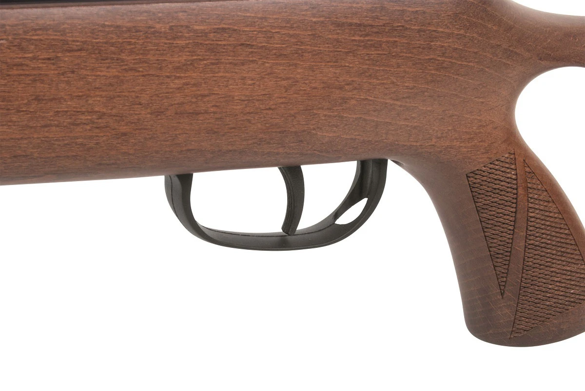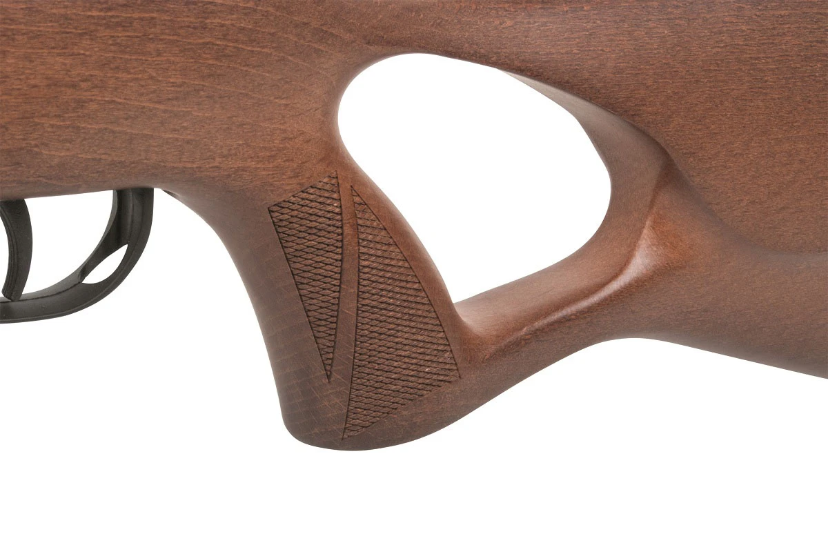 • Ergonomischer Buchenholz-Lochschaft mit Fischhaut