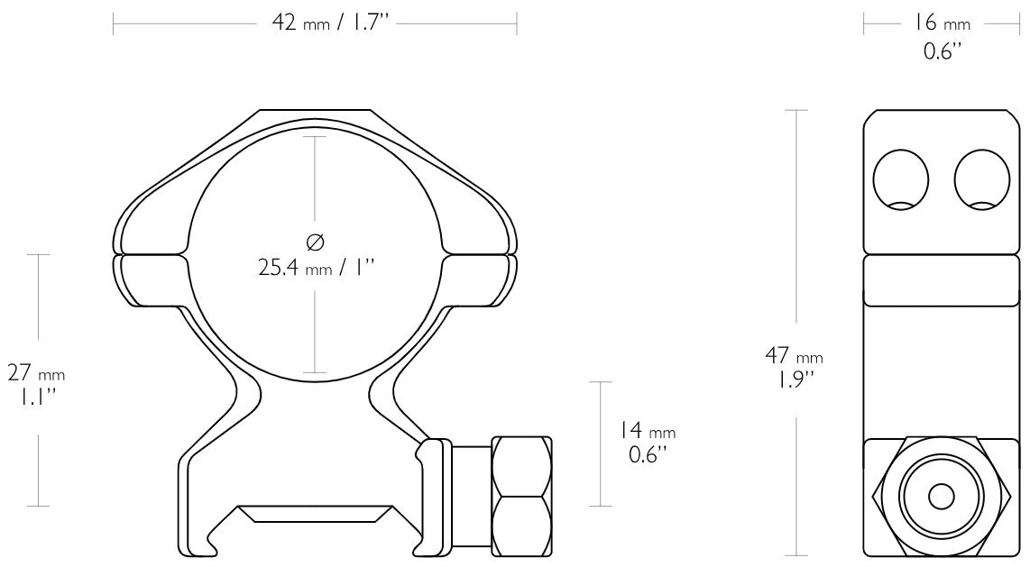 Hawke Präzision Festmontage aus Stahl Weaver 1″ zweiteilig High
