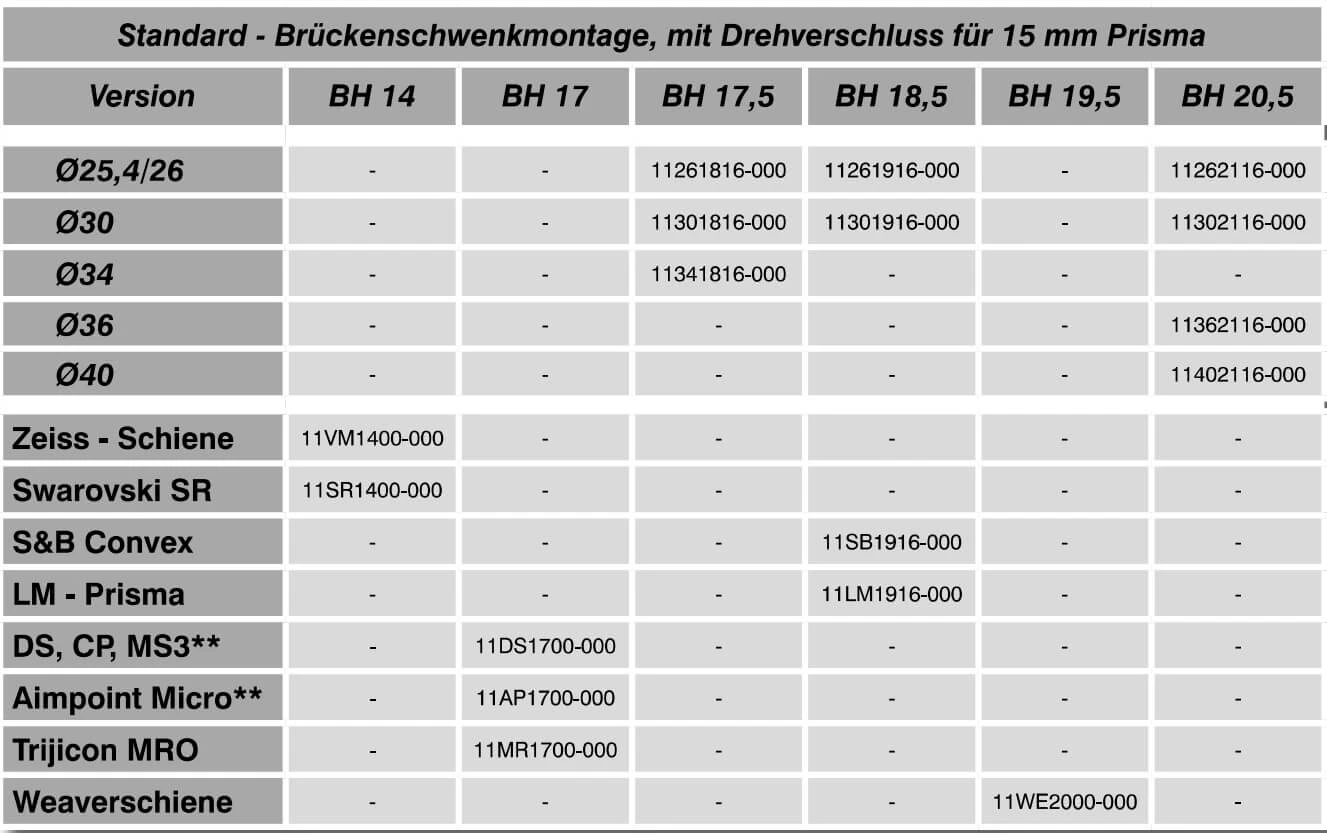 HMS Brückenschwenkmontage – für EAW Schwenkmontagebasen – Reflexvisierungen