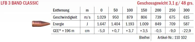 Die Patronen mit dem bleifreien LFB 3 BAND CLASSIC Geschoss (früher Jaguar Classic) wurden auf der Basis einer Jahrhunderte alten Technologie für Artilleriegeschosse entwickelt.