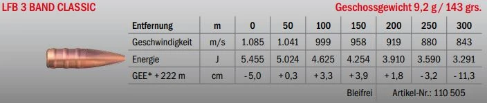 Die Patronen mit dem bleifreien LFB 3 BAND CLASSIC Geschoss (früher Jaguar Classic) wurden auf der Basis einer Jahrhunderte alten Technologie für Artilleriegeschosse entwickelt.