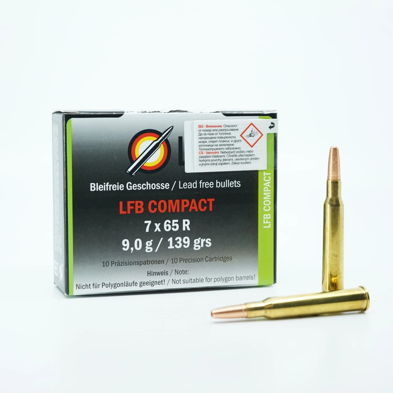 Für die Anhänger der splitterfreien Deformationsgeschosse wurde das bleifreie LFB COMPACT Geschoss entwickelt. Die Verwendung eines speziellen Werkstoffes sowie der Geschossaufbau bewirken, dass das Geschoss deformiert und nicht splittert. Dies wird sowohl bei schwachem als auch bei stärkerem Wild gewährleistet.