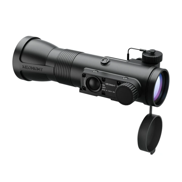 Das Nachtsicht-Zusatzgerät MeoNight eignet sich ideal zur Kombination mit klassischen Tageslicht-Zielfernrohren. Es ermöglicht die Jagd bei völliger Dunkelheit oder bei extrem ungünstigen Lichtverhältnissen. Es kann zugleich als Monokular zur Beobachtung bei Nacht ohne Verwendung eines Gewehrs verwendet werden. MeoNight bietet in der Grundversion keine Vergrösserung, eine 3-fache Vergrösserung kann jedoch mithilfe eines Zusatzadapters (Boosters) erreicht werden. Bei Montage auf der Waffe erfolgt die Vergrösserung direkt durch das Zielfernrohr. Ein Nachtsichtgerät kann mithilfe einer Picatinny-Schiene (MIL-STD-1913) vor dem Zielfernrohr angebracht und über einen Adapter mit dem Zielfernrohr verbunden werden. Eine weitere Möglichkeit besteht darin, das Gerät über einen Adapter direkt am Objektiv des Zielfernrohrs (hinter dem Zielfernrohr) anzubringen, sodass es nicht an der Waffe befestigt werden muss. MeoNight 1.1 ist mit einem hochwertigen Mikrokanal-Helligkeitsvertärker ausgestattet.