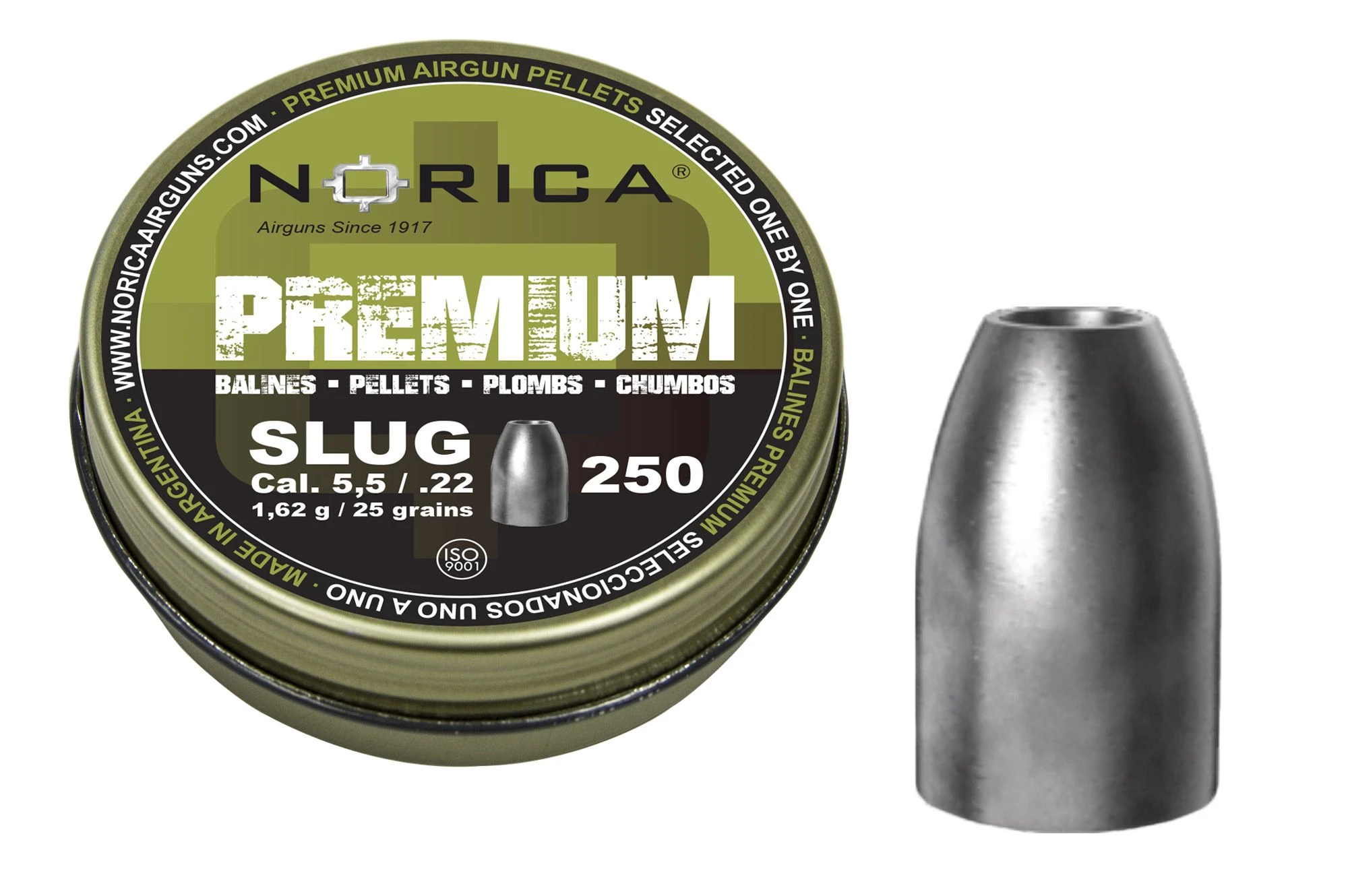 Die Pellets sind in den Kalibern 5,5 mm (.22), 6,35 mm (.25), 7,62 mm (.30) und 9 mm (.35) erhältlich und praktisch in einer Dose mit Schraubverschluss verpackt, die innen mit beschichtet ist Epoxidharz für zusätzlichen Schutz gegen Bleioxid.