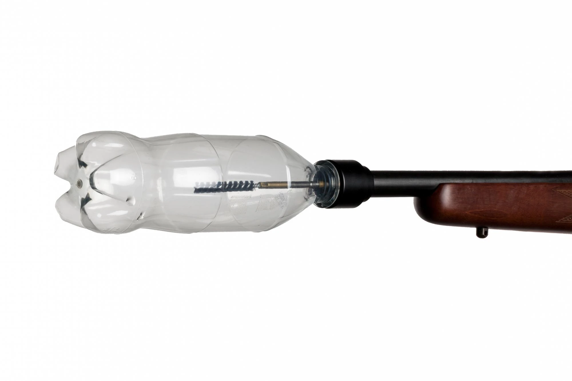Der Birkenast PET Flaschen Adapter kann entweder auf ein vorhandenes Laufgewinde aufgeschraubt werden oder aber mittels 3 Imbus-Madenschrauben auf dem Laufende festgeklemmt werden. Das Spezial-PET-Gewinde ermöglicht die Aufnahme sämtlicher PET Flaschen.