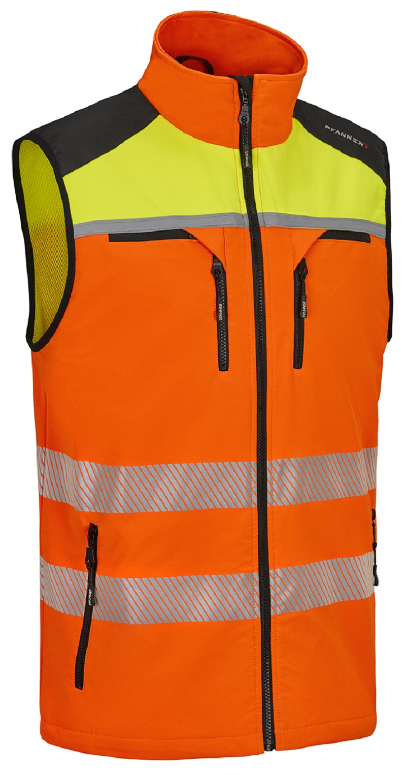 Die Pfanner Klima Air® Weste sorgt mit dem KlimaAir Distanzgewebe und elastischem, wasser- und schmutzabweisendem Oberstoff für optimales Arbeitsklima. Mit der extra langen Passform hält die Weste den Körper auch bei windiger Arbeit angenehm warm.