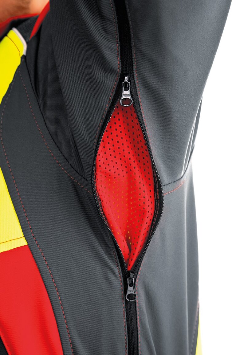 Die äusserst leichte Ventilation Jacke ist für die warmen Arbeitstage konzipiert. Die atmungsaktive StretchAIR® Technologie garantiert die maximale Bewegungsfreiheit und Atmungsaktivität. Die KlimaAIR® Technologie sorgt für die Durchlüftung der Jacke, welche sich durch die 50 cm langen Lüftungsschlitze im Achselbereich zusätzlich maximieren lässt. Die Zipp2Zipp® Brusttasche bietet einen leicht zugänglichen Stauraum. Die hoch sitzenden Bauchtaschen sind auch mit einem Werkzeug- und Klettergurt einwandfrei zugänglich.