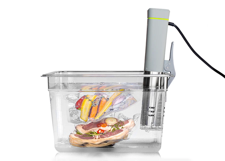 Dieses Sous-Vide Becken aus transparentem hitzebeständigem Kunststoff funktioniert perfekt im Zusammenspiel mit dem Sous-Vide Stick LX.20 oder einem anderen Sous-Vide Stick.