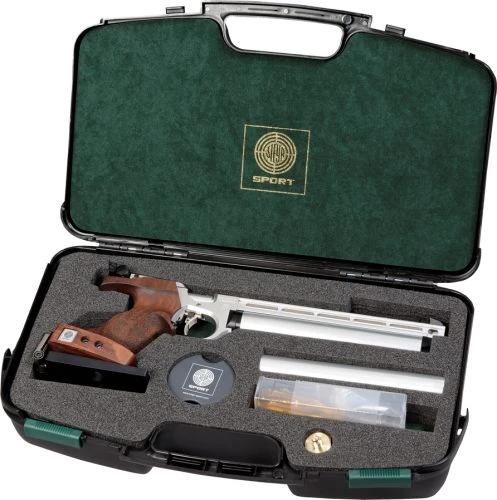 – Pistole in Silber und Schwarz, mit Druckbehältern in Silber, Schwarz, Blau oder Gold