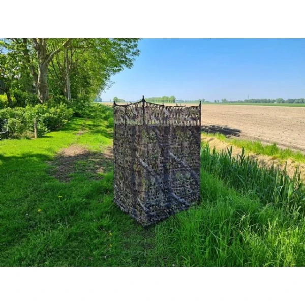 Super handliches Tarnzelt und sehr einfach zu bedienen, ausheben, höhenverstellen und fertig. Die Oberseite (30 cm) des Tarnnetzes besteht aus getarnten transparentem Netzmaterial.