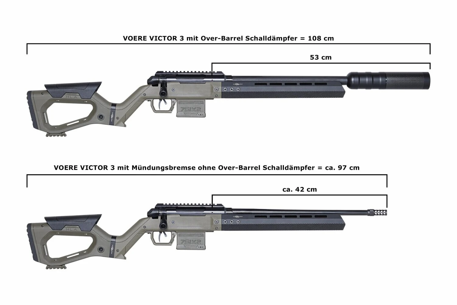 • Gesamtlänge mit Schalldämpfer: ca. 108 cm